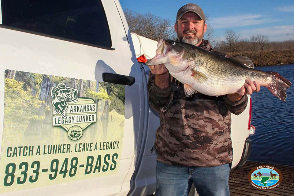 After a shakedown run in 2025, the Arkansas Game and Fish Commission began its program in earnest this year. Anglers bringing in a 10-pound plus bass between Jan. 1 and March 31 are asked to immediately call the Legacy Lunker hotline. Program coordinator Will Lancett will drive his mobile tank to pick up the fish then deliver it to biologists at the Joe Hogan State Fish Hatchery in Lonoke.