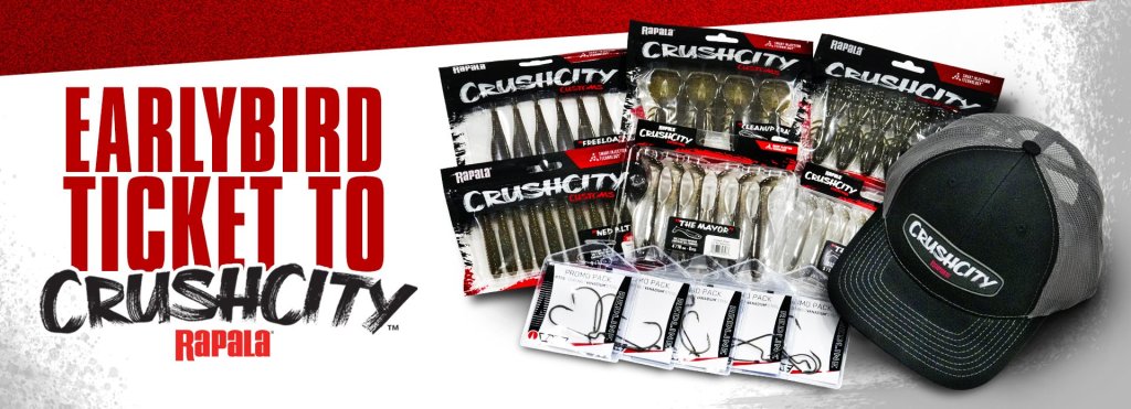Every week three winners will receive a kit of CrushCity plastics, RedLine Series hooks and a CrushCity patch hat.
