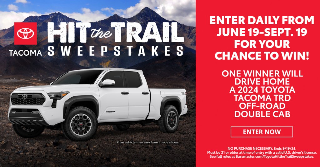 Enter daily through September 19 for a chance to win a 2024 Toyota Tacoma TRD Off-Road Double Cab! Winner Paul R., Michigan.